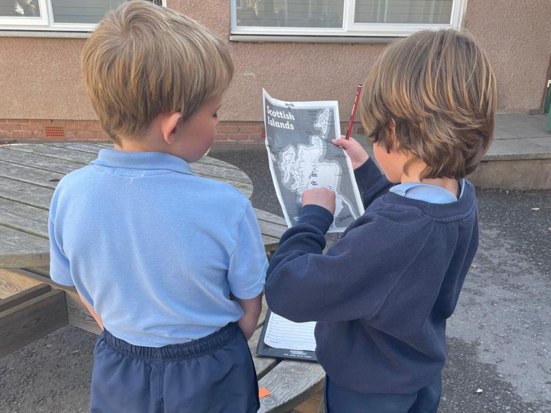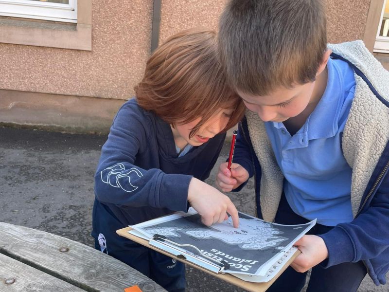 Form 2 are continuing their studies on Scotland and the two classes have been working together outdoors to complete their Scotland quiz.
